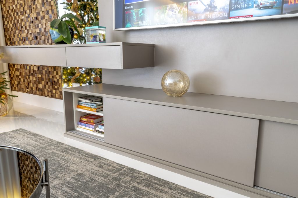 Home Theater: Gianduia Trama / Branco TX | Adega: Branco TX / Gianduia Trama / Carvalho Hanover